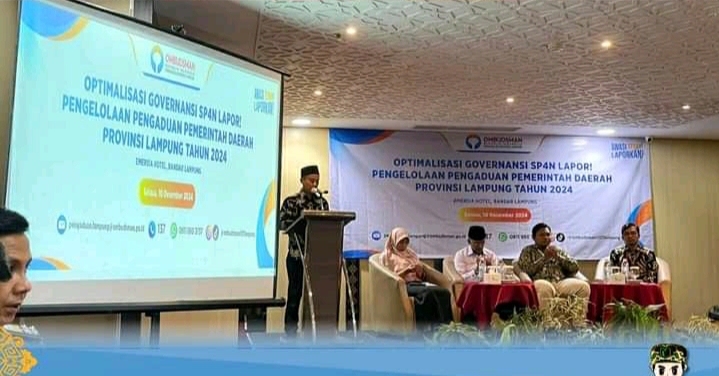 Bandar Lampung, 10 Desember 2024 – Ombudsman menggelar Workshop mengenai Optimalisasi Governansi SP4N Lapor! Pengelolaan Pengaduan Pemerintah Daerah Provinsi Lampung Tahun 2024 yang diselenggarakan di Hotel Emersia & Resort, Bandar Lampung.