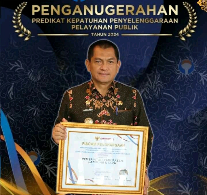 Lampung Utara – Pemerintah Kabupaten Lampung Utara kembali menorehkan prestasi gemilang dengan meraih penghargaan Predikat Kepatuhan Penyelenggaraan Pelayanan Publik dari Ombudsman Republik Indonesia. Penghargaan ini diberikan dalam acara penganugerahan yang digelar di Aula Hotel Emersia, Bandar Lampung pada Kamis, 12 Desember 2024.